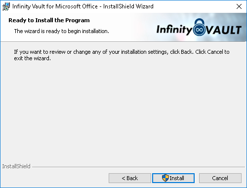 On the Ready to Install the Program dialog, simply click Install to verify that you wish to install Infinity Vault.