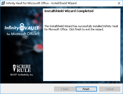 Click Install and the installation is complete and you are ready to begin using the Infinity Vault for Microsoft Office add-in.
