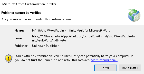 This documentation will walk you through installing the Infinity Vault Add-In for Microsoft Office.