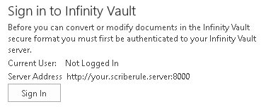 Access the Sign in to Infinity Vault Dialog