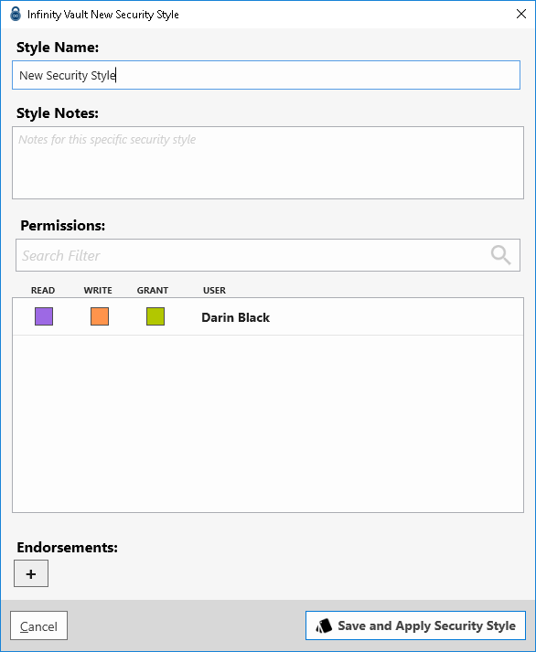 Click the Add New Style button to open the Infinity Vault New Security Style dialog.