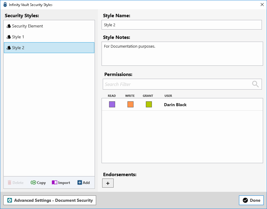 This document will walk you through importing existing Security Styles from other documents in Infinity Vault that you have access to.